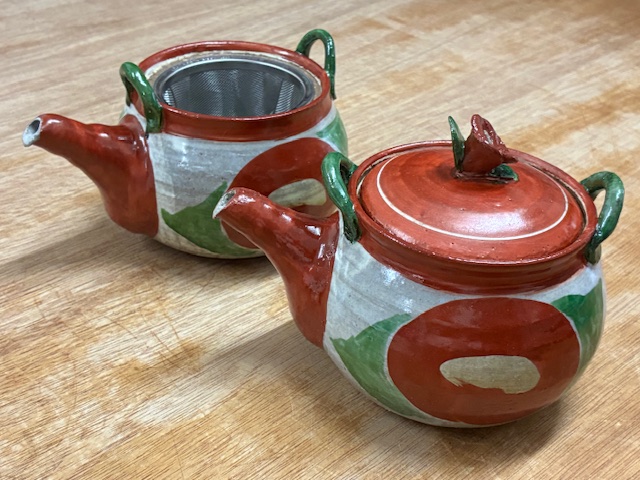 赤絵土瓶と湯飲みセットの和食器コーディネート