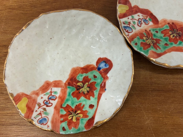赤絵金彩小皿 山笑ふの大きさや重なり